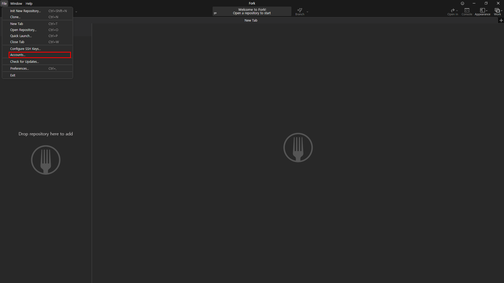 WindowOS에서 설치 한 후 fork를 실행하면 화면이 나옵니다.