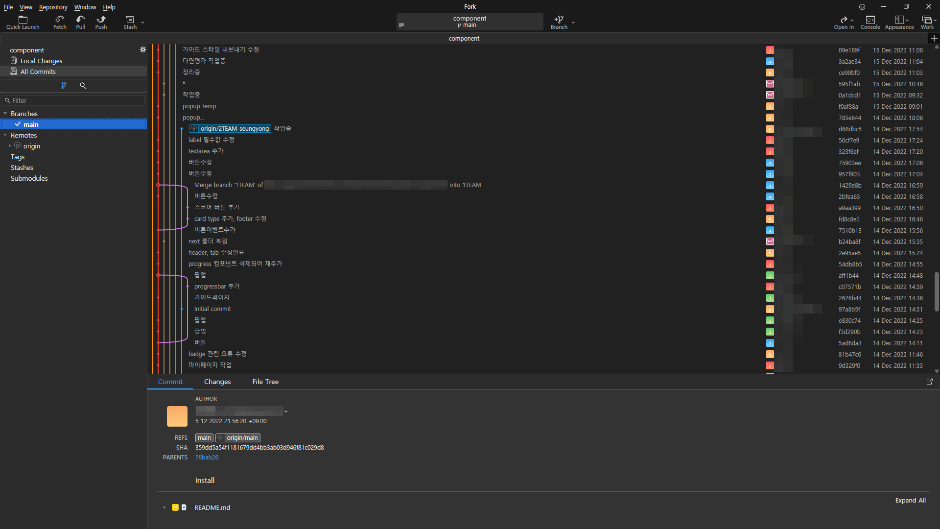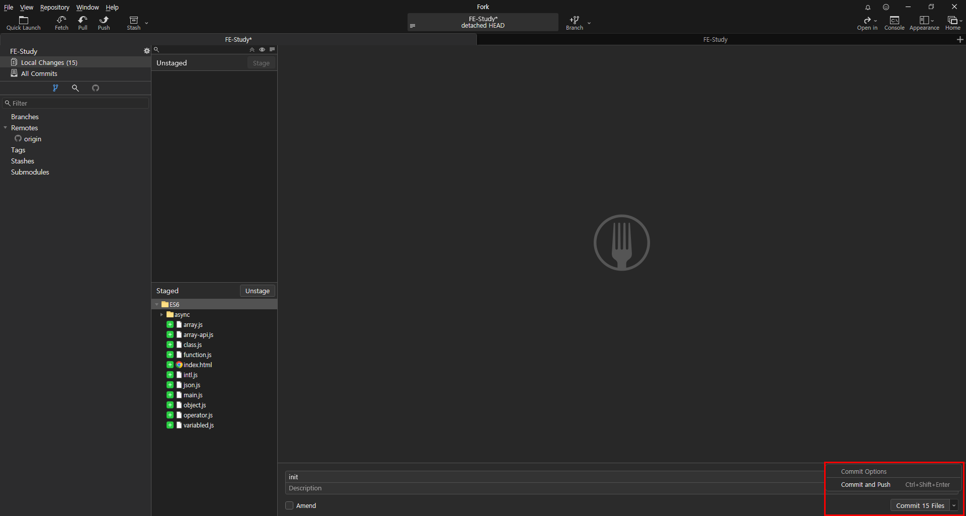 위에서 언급했듯이 요즘 Git fork 클라이언트를 주로 사용하고 있습니다.