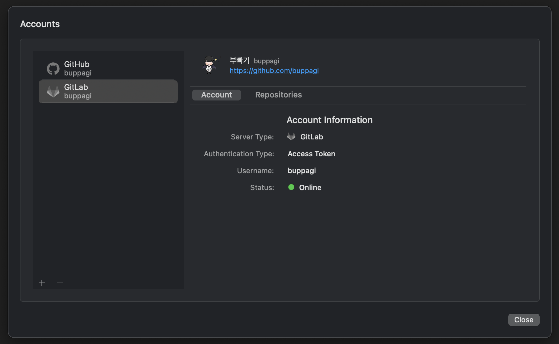 각 Git 플랫폼에 따라 계정 인증 후 사용 하시면 됩니다.