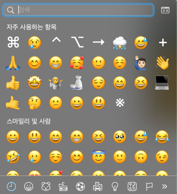 한글로도 검색이 가능해서 쉽게 이모티콘 및 기호를 찾을 수 있습니다.